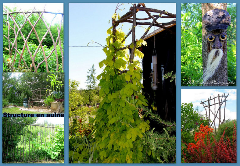 4 - Avec des branches d’aulne, on confectionne des bancs, tonnelles et arabesques. Il suffit d’aller les couper avant la montée de la sève et on n’a pas besoin de les écorcer. Ces élements décoratifs seront résistants pendant 4 à 5 ans.